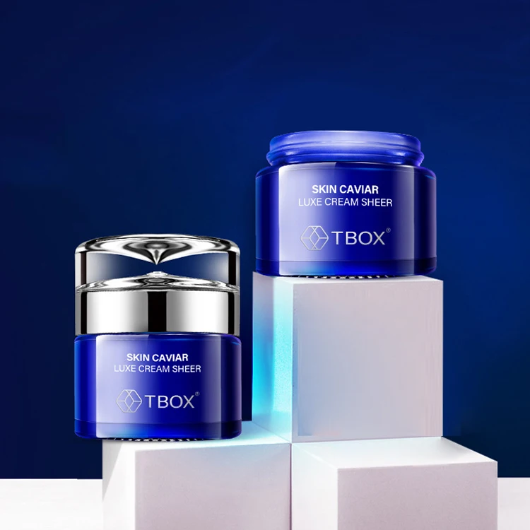 Pop Sale Custom High Quality Blue clear Glass Jar Luxury Cosmetic Crystal Jar with Light Silver Lid