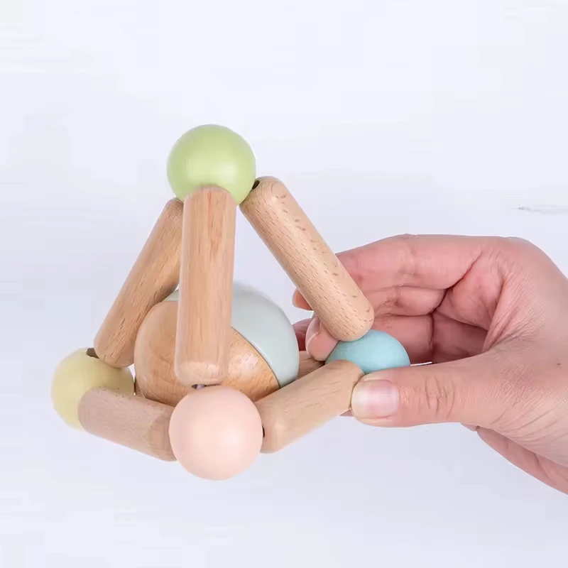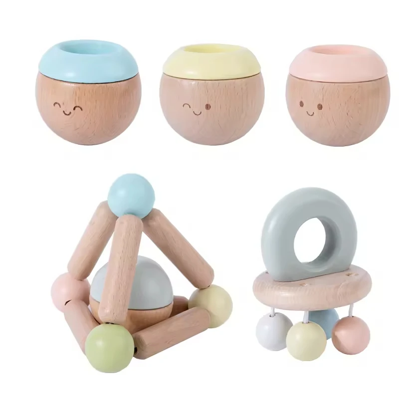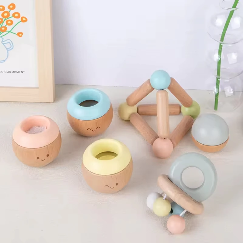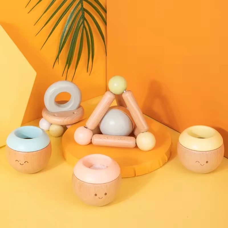 Beech Wooden Rings Fidget Sensory Gift Baby Teethers DIY Educational Wooden Toys Baby Rattles Toy Baby Rattle Set
