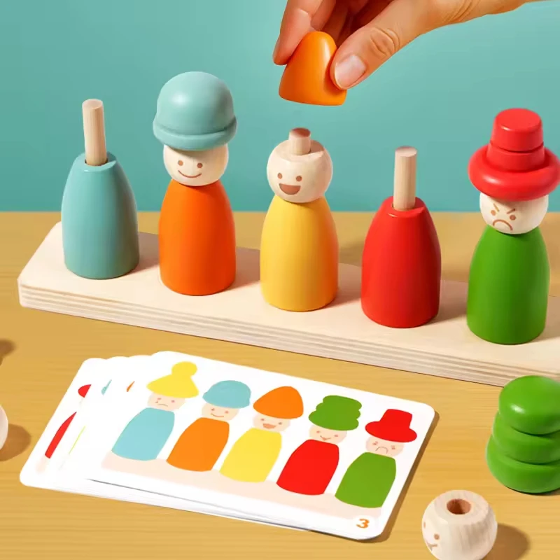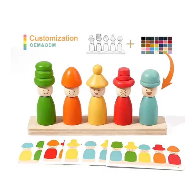 Montessori Toys Wooden Peg Doll Stacking Puzzle Children's Color Cognition Educational Toy Fine Motor Skills Rainbow Puppet