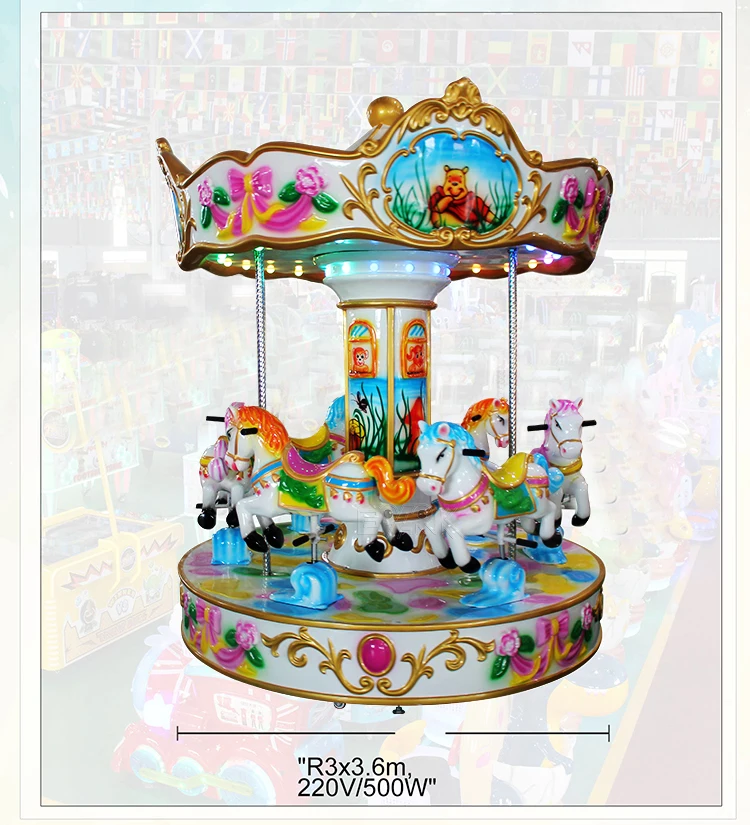 Children Indoor Amusement Park Game Machine Coin Operated Kids Rides 6 Seats Mini Merry Go Round Carousel for Sale