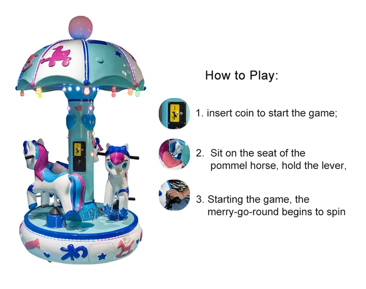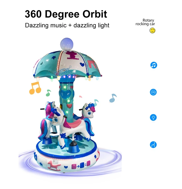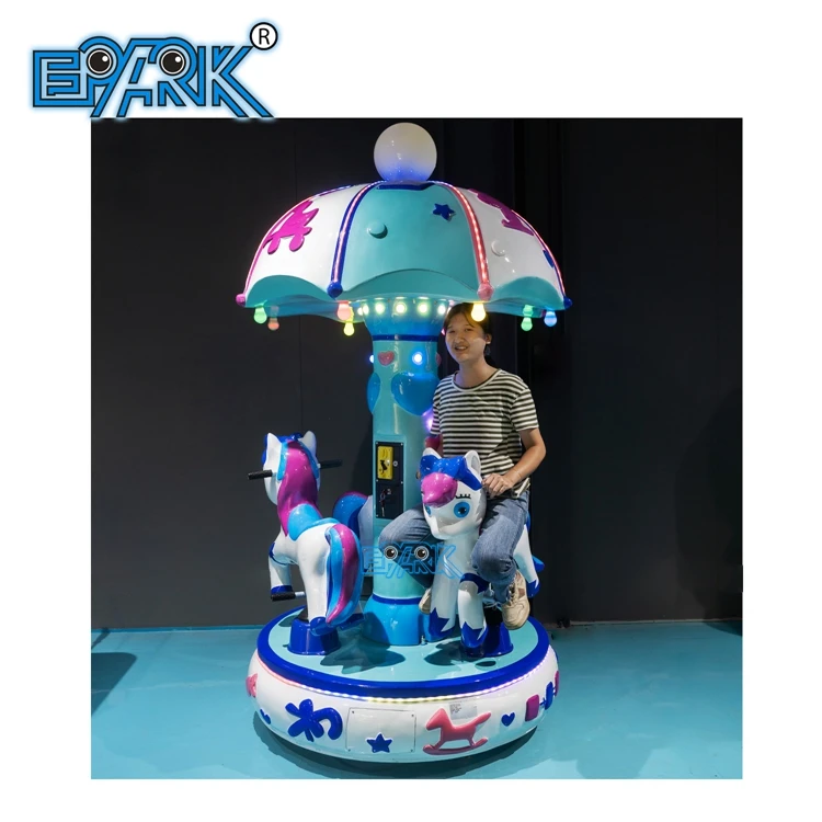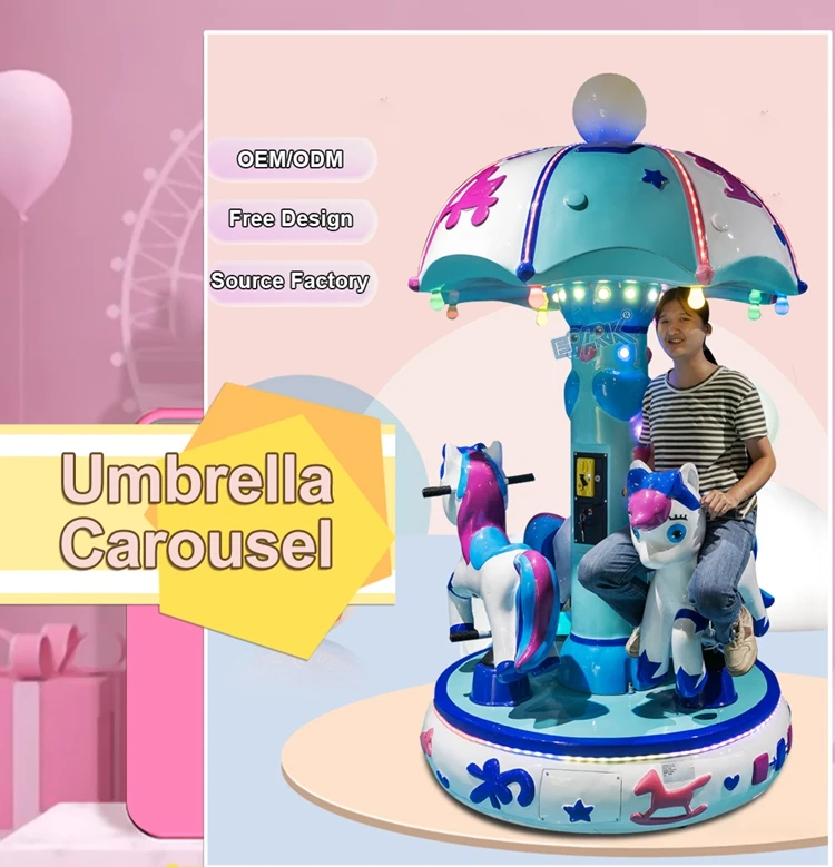 3 Seats Mini Umbrella Carousel Miniature Merry-go-round Indoor Kiddie Ride Horse Amusement Children for Fairground