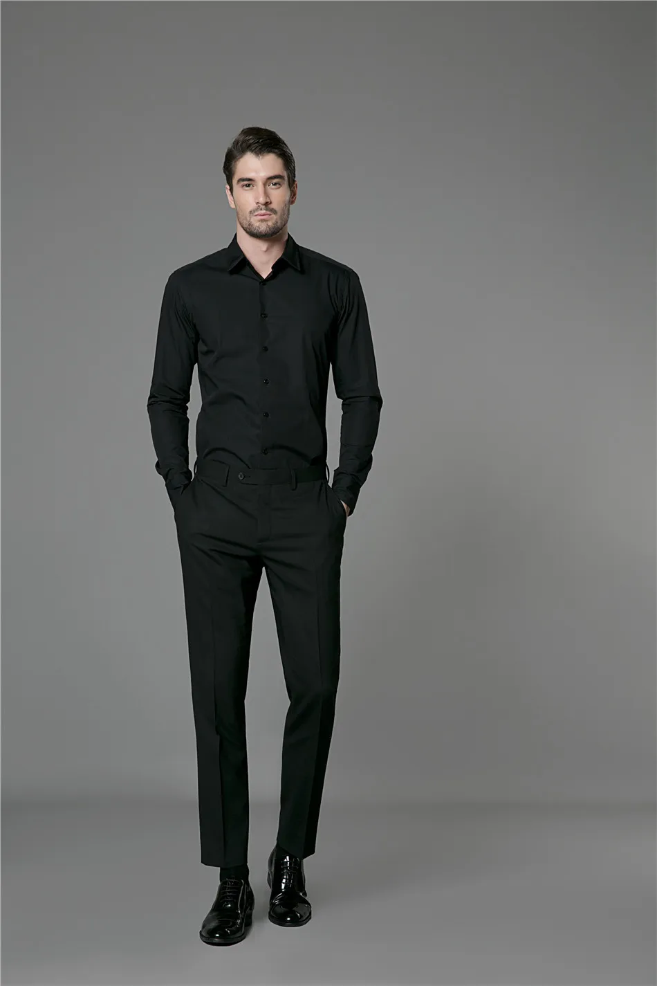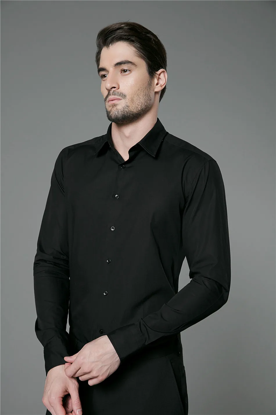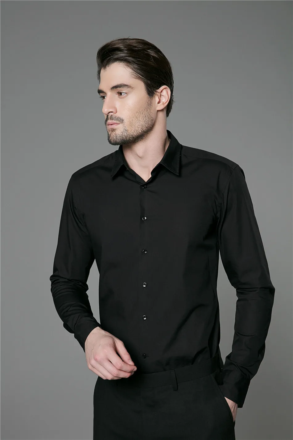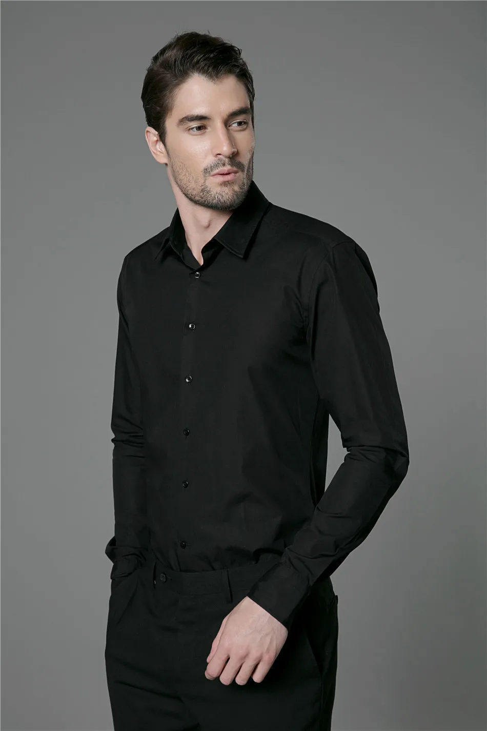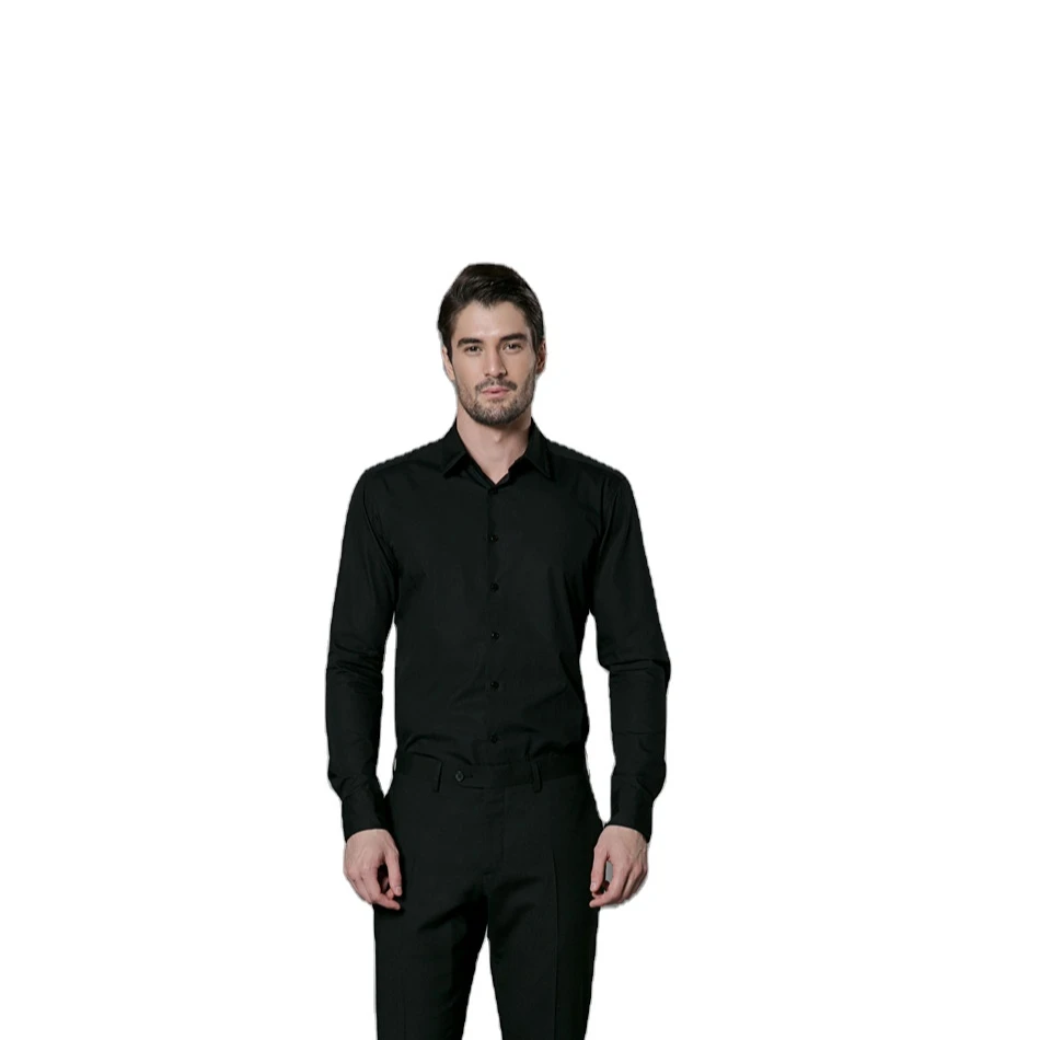 Good Quality 100% Cotton Business Casual Brand Formal Black Shirts for Men
