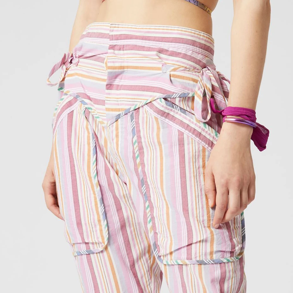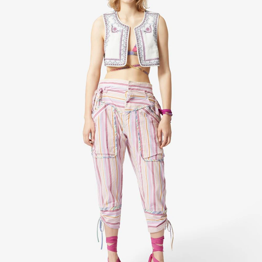 Latest Design High Quality Ankle-Length Pants Stripe print skinny leg Fashion Trousers Female Korean Trousers Women